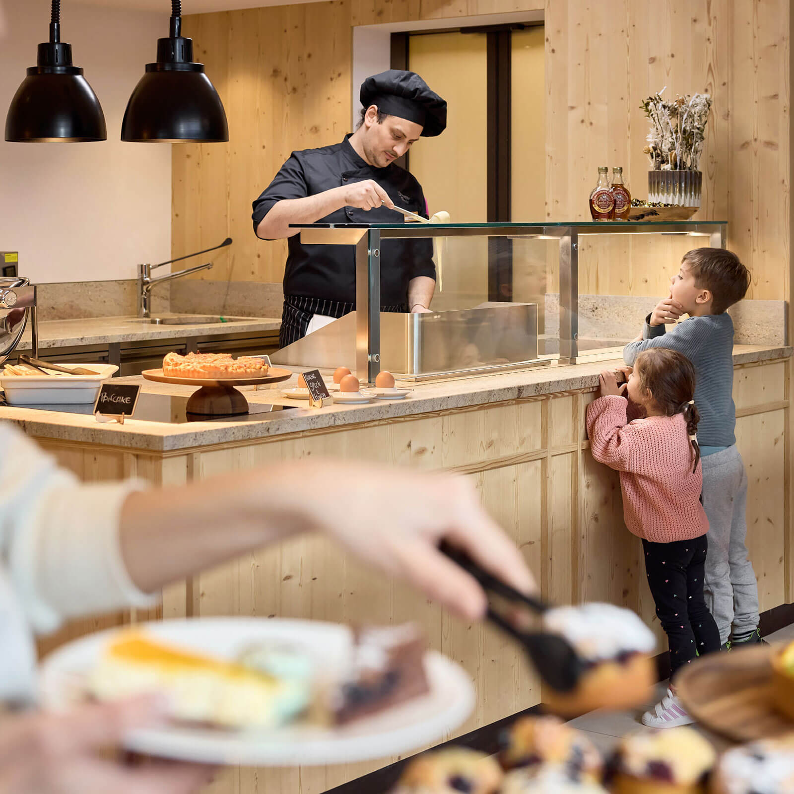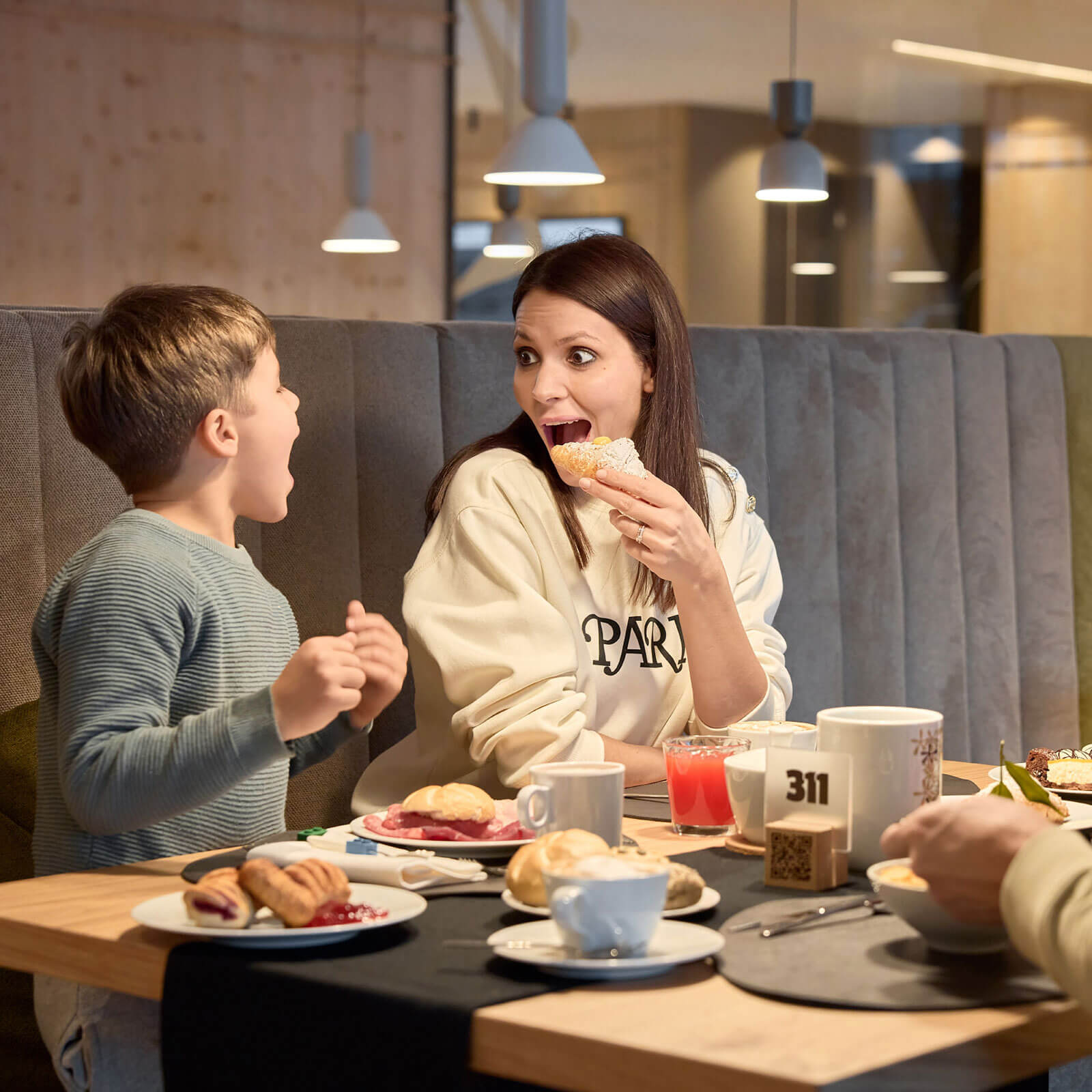 Stylische Apartments aus natürlichen Materialien für gemeinsame Familienzeit mit extra viel Platz, Gute-Laune-Frühstücksbuffet mit Show-Cooking, Teatime & Happy Hour in der hoteleigenen Loungebar – so schön kann Ihr Urlaub in unserem Familienhotel in Südtirol sein!